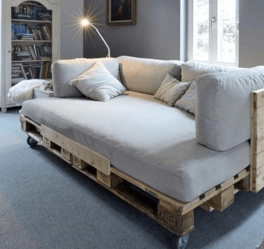 當然,我們也可以用貨運托盤來制作一個可移動☀️的沙♈發或者是沙發床。如何做到可移動?隻要在托盤底部安裝輪胎即🥵可,這樣就可以讓沙發移動到你想去🏃🏻♂️的所有地方。